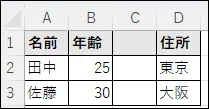 上記のような表で、B列(年齢)とC列(住所)の間に「職業」列を追加したい場合の手順: