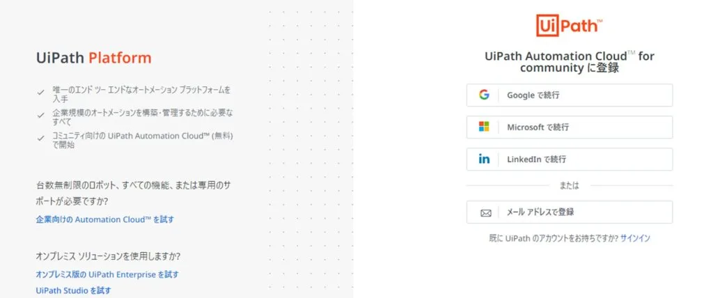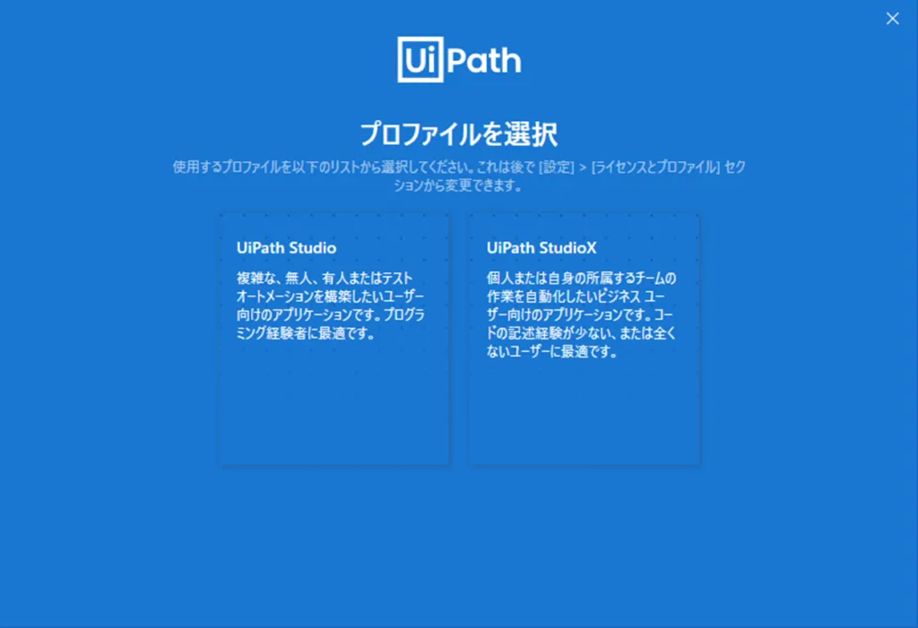 青い「UiPath Studio をダウンロード」ボタンをクリックします。