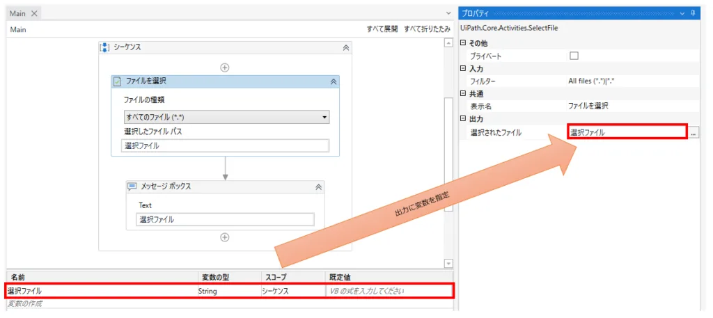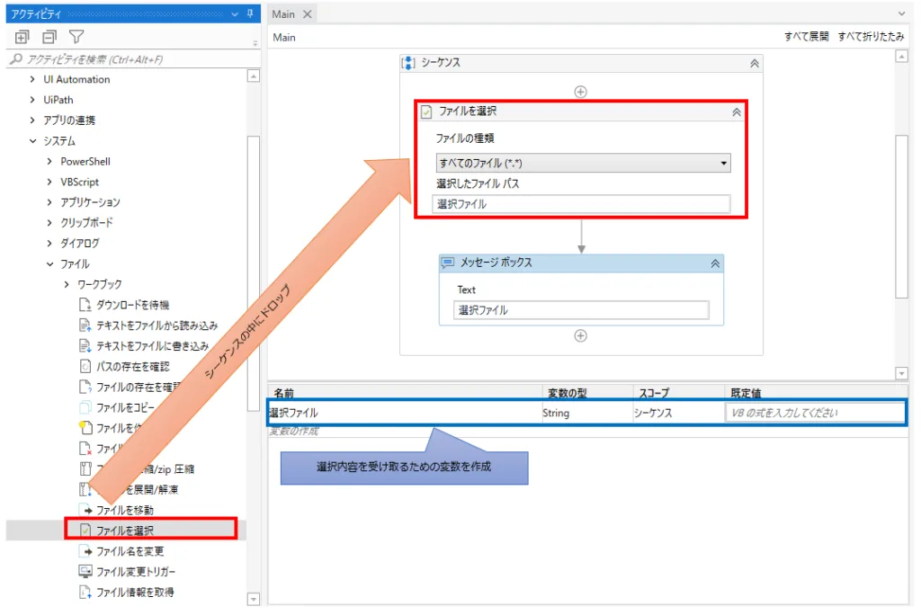 UiPath ファイルを選択 アクティビティ