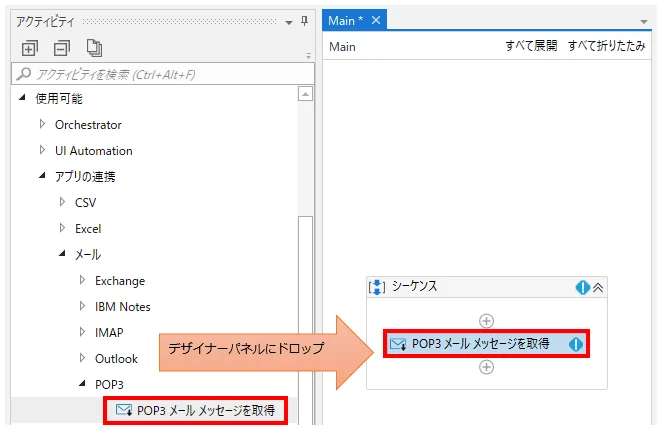 UiPath POP3 メール メッセージを取得 アクティビティ