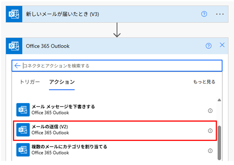 例えば「メールの送信」アクションを追加すれば、受信したメールの内容を別の宛先に転送できます。
