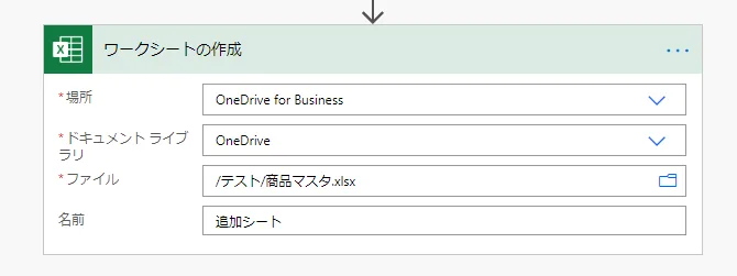 Power Automate 「ワークシートの作成(Excel Online (Business))」アクション