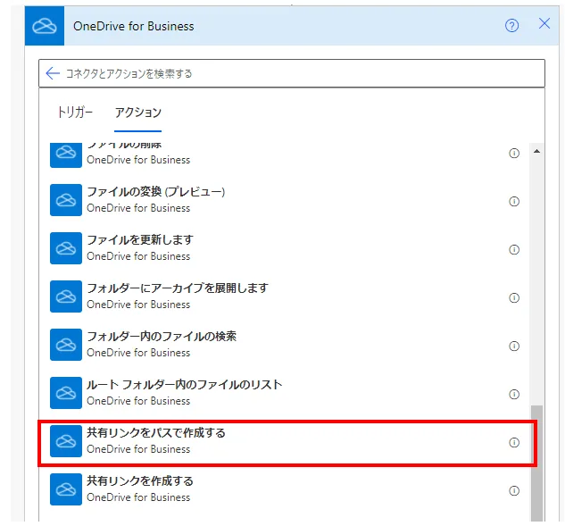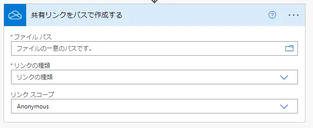 Power Automate 「共有リンクをパスで作成する(OneDrive For Business)」アクション