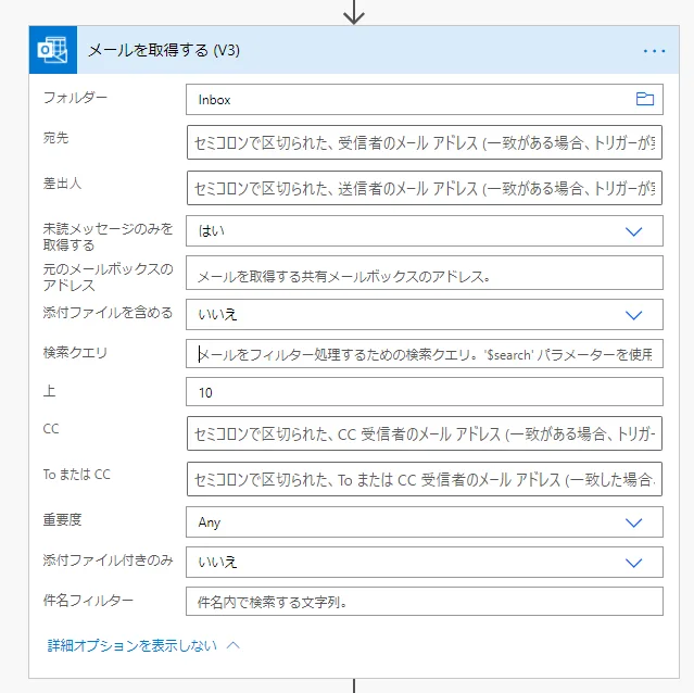 Power Automate 「メールを取得する(Office 365 Outlook)」アクション