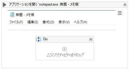 「アプリケーションを開く」の「Do」の中にUI操作のアクティビティを設置すると