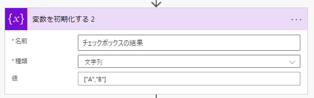 次に「変数を初期化する」を設置し、種類をアレイにします。