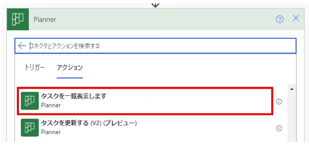 Power Automate 「タスクを一覧表示します(Planner)」アクション