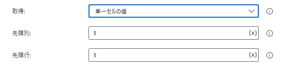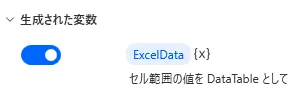 「Excel ワークシートから読み取り」は指定セルの内容を変数に設定するアクションです。
