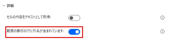 「詳細」の「範囲の最初の行に列名が含まれています」をONにすると