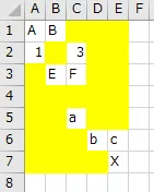 下の表に対して実施すると結果としてこのようになります。(黄色は空白)