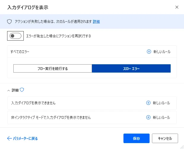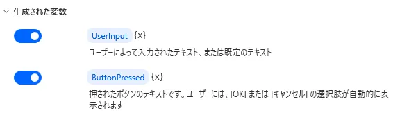 Power Automate Desktop 「入力ダイアログを表示」アクション