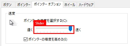 二つ目の左ボタンを離すアクションで、左端でスライダーが離されます。
