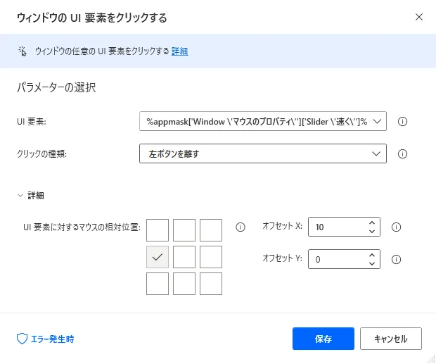 Power Automate Desktop「ウインドウのUI要素をクリックする」アクション
