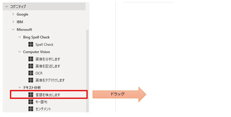 「アクション」の「コグニティブ」、「Microsoft」、「テキスト分析」より