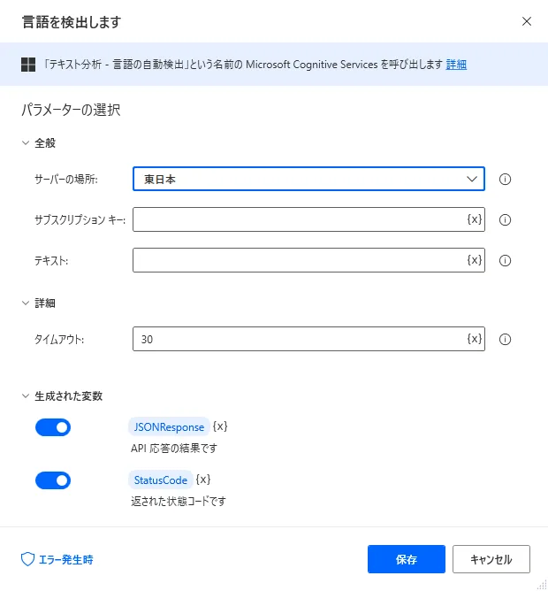 指定文字列が何語かの判定の行うアクションの使い方を紹介します。