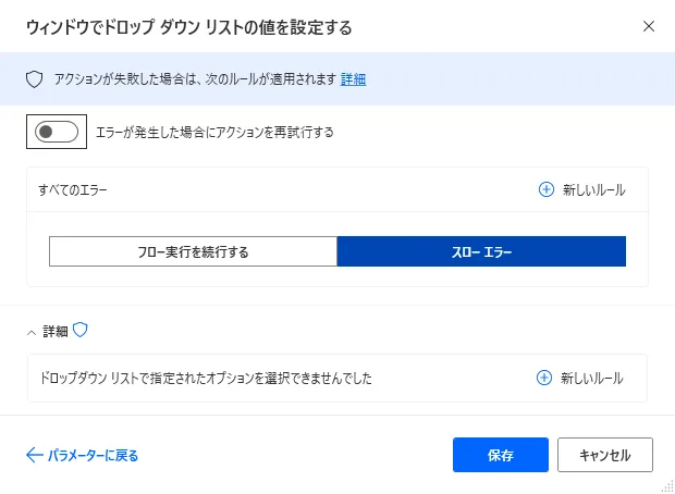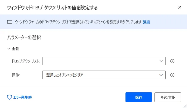 Power Automate Desktop「ウィンドウでドロップダウンリストの値を設定する」アクション