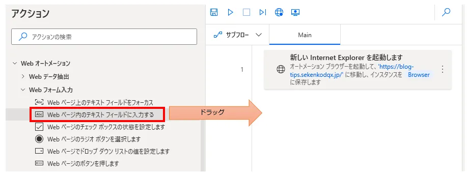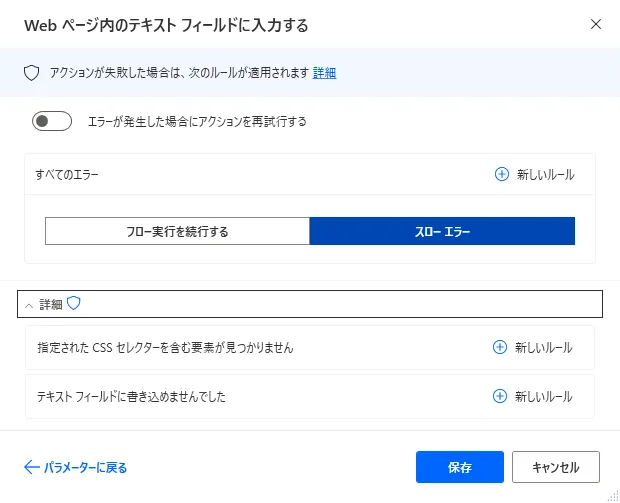 Power Automate Desktop「Web ページ内のテキスト フィールドに入力する」アクション