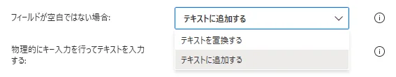 指定した「UI要素」に既に値が入力されている場合の動作を選択します。