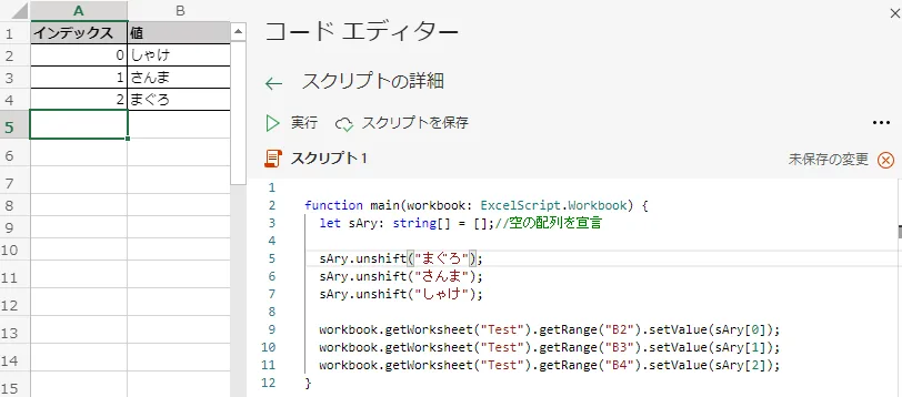 let array: string[] = ["まぐろ","さんま","しゃけ"];