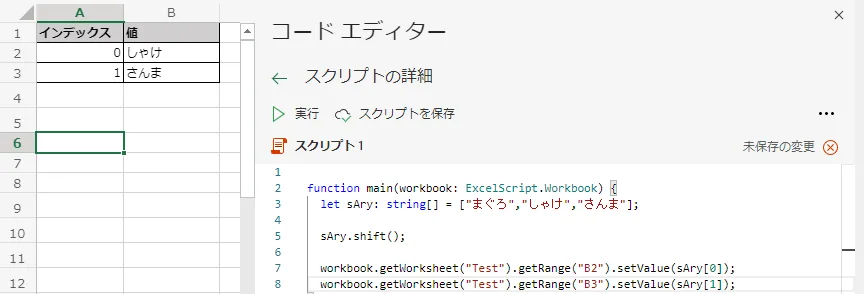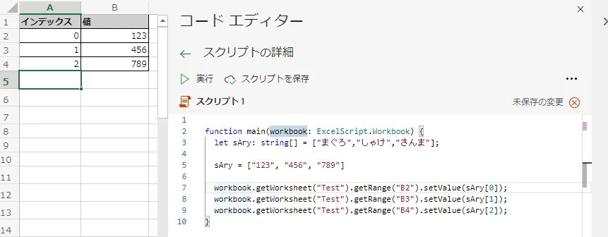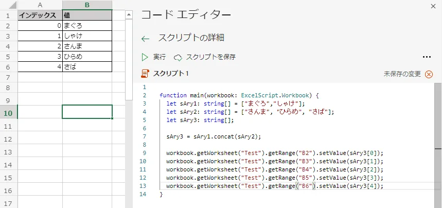 let 配列変数: 要素のデータ型[] = [,区切りで要素を指定];