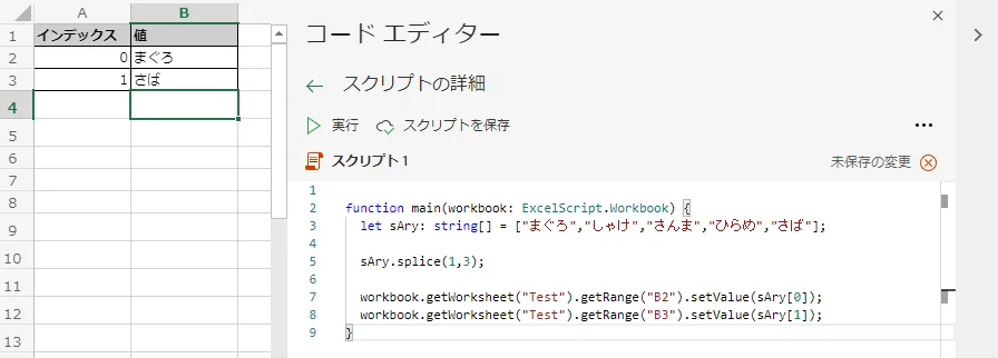 配列変数.splice(削除する開始インデックス,削除する要素数);