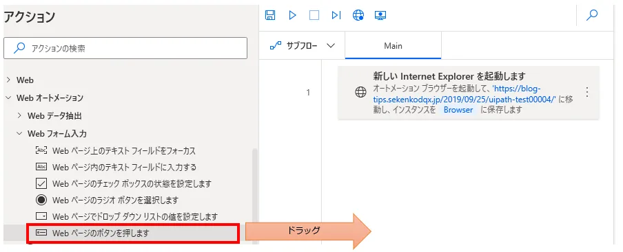 「アクション」の「ブラウザー自動化」より、