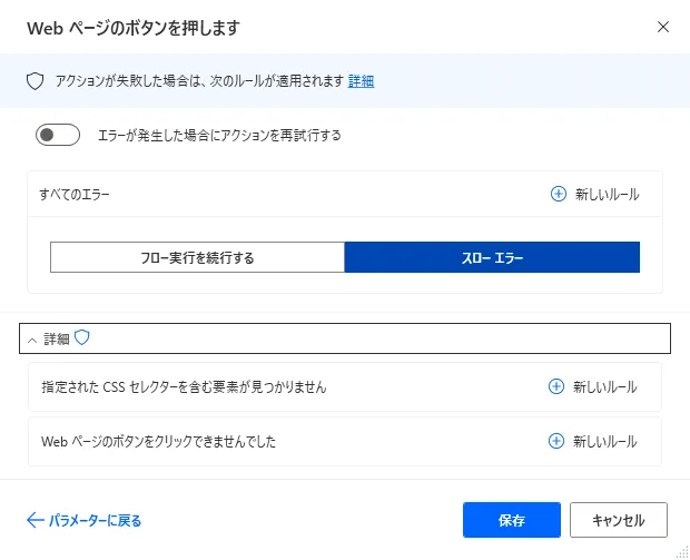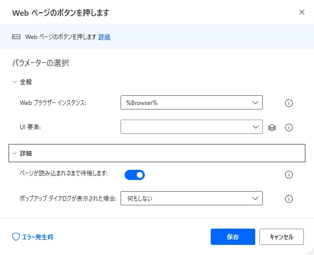 Power Automate Desktop「Web ページのボタンを押します」アクション