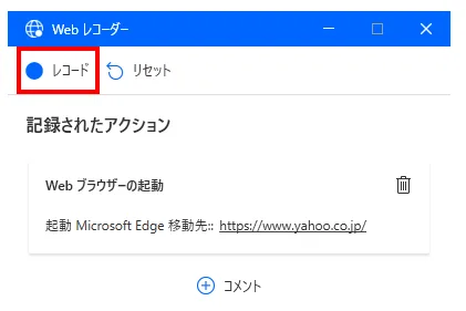 「レコード」をクリックして、記録したい操作を行います。