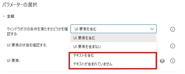 Power Automate Desktop「ウィンドウが次を含む場合」アクション