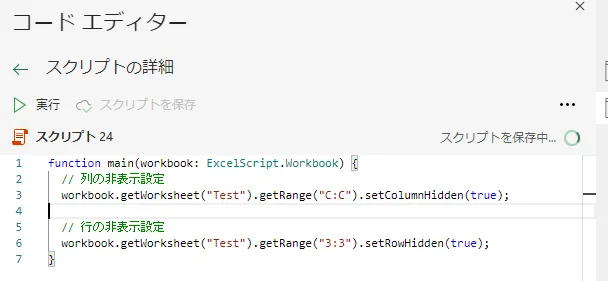 Excel Office スクリプト 行・列の表示・非表示設定