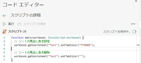 Excel Office スクリプト シート見出し色設定