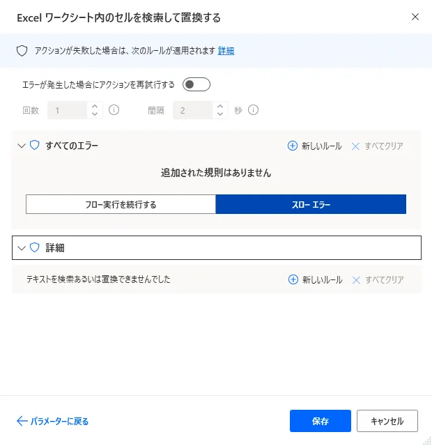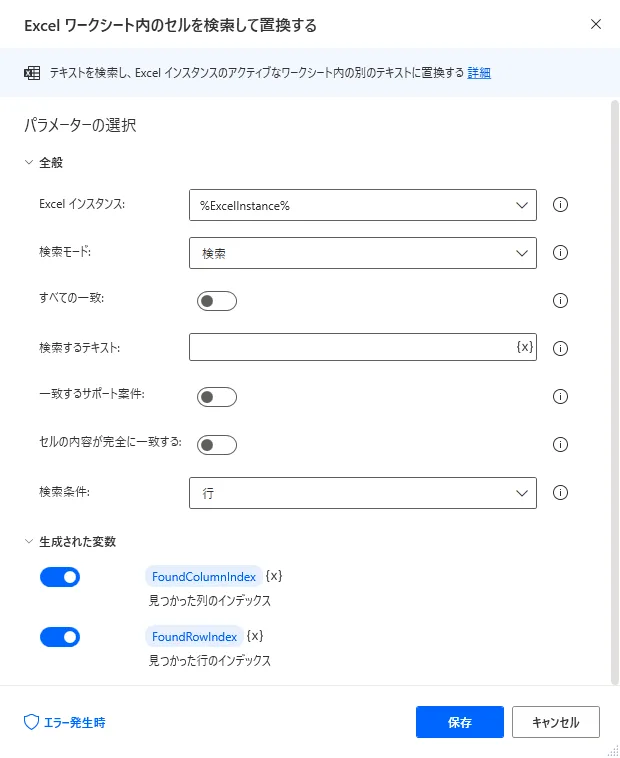 Power Automate Desktop 「Excel ワークシート内のセルを検索して置換する」アクション