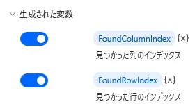 検索結果が格納されます。(一致セルの行・列の位置)