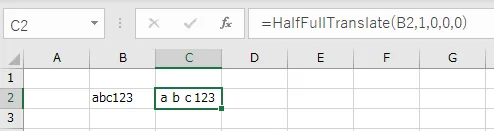 =HalfFullTranslate(文字列,英字の変換種類,数字の変換種類,カナの変換種類,記号の変換種類)