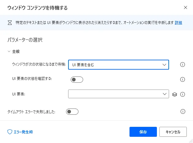 Power Automate Desktop「ウィンドウ コンテンツを待機する」アクション
