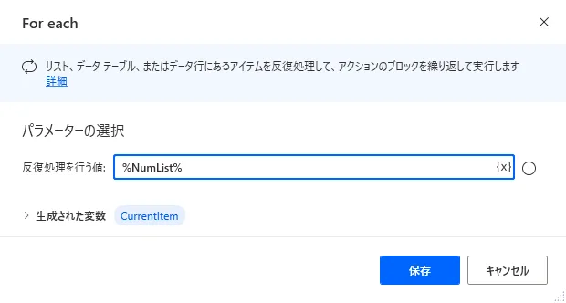 | 書き込む値 | %CurrentItem% |