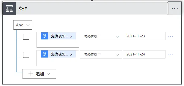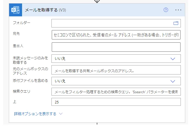 Power Automate Outlookメールの抽出対象を日付範囲で指定