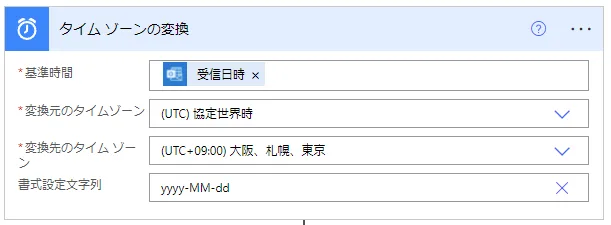 「受信日時」を協定世界時から日本の日付、書式設定をyyyy-MM-ddに変換します。
