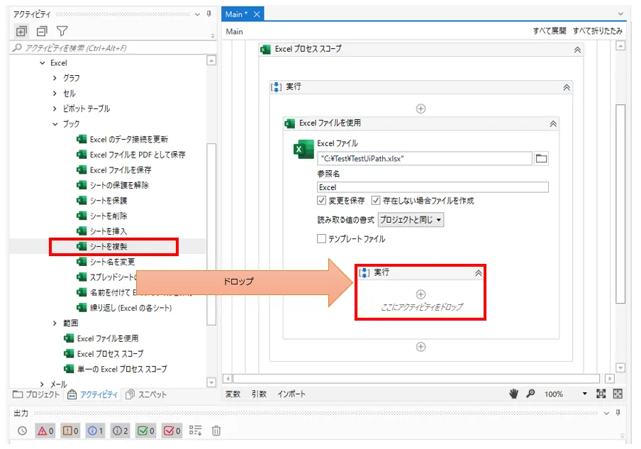 UiPath Excel(モダン) シートを複製 アクティビティ