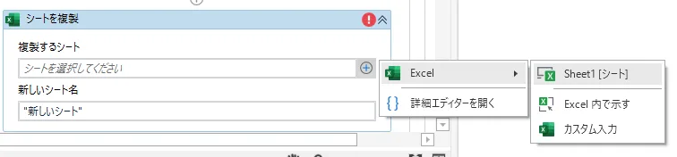 Excelブックにシートを複製するアクティビティです。