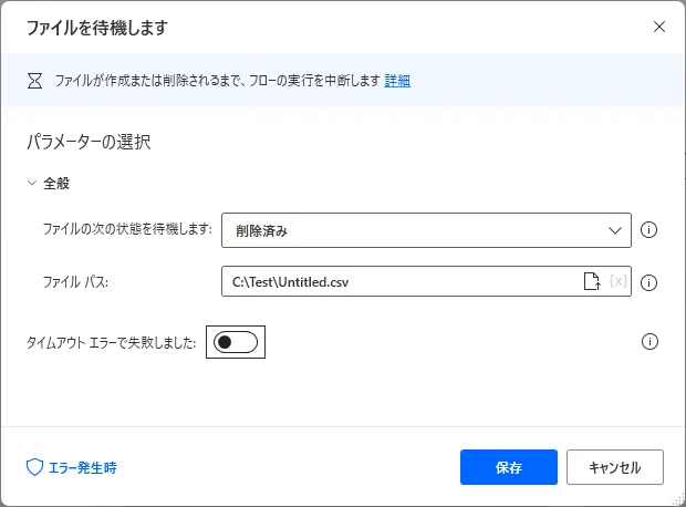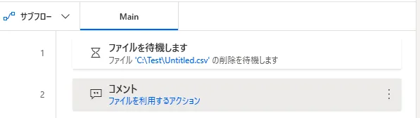 時間差でファイルが作成される可能性がある場合は「ファイルを待機します」を設置します。