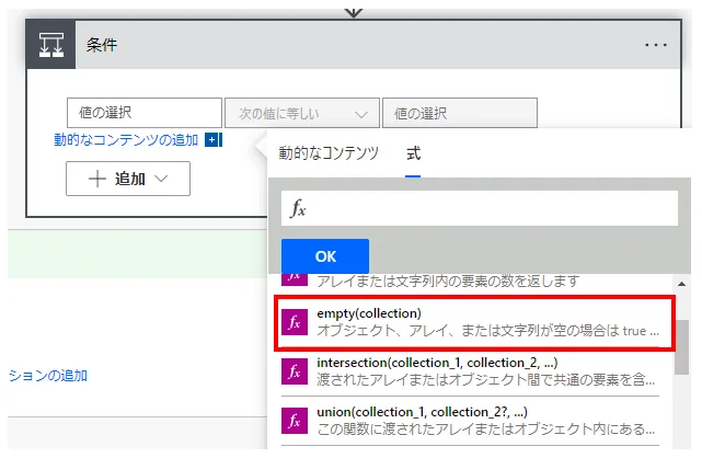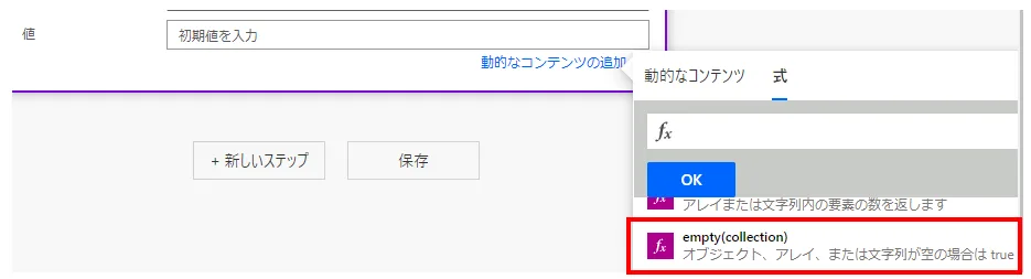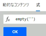 「式」タブ、emptyをクリックすると関数名と()が数式欄にセットされます。
