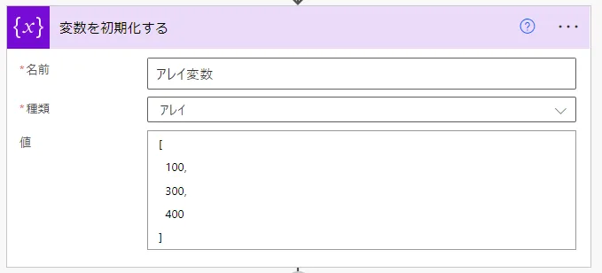 今回は例としてアレイ変数[100,300,400]を用意しています。