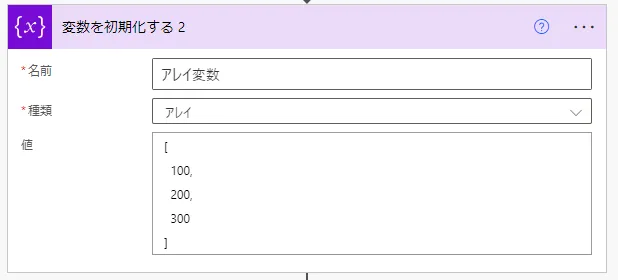 今回は例としてアレイ変数[100,200,300]を用意しています。