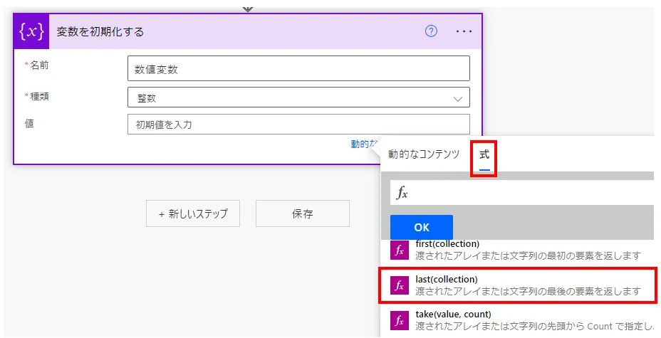 lastはPower Automateの式に使用する関数で、