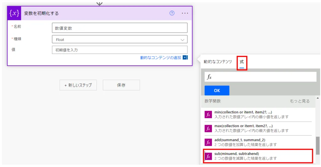 Power Automate 「sub」関数