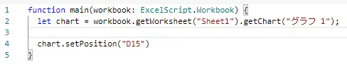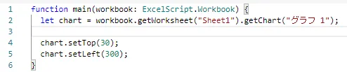 Office スクリプトにおけるグラフの現在位置の取得/変更(移動)方法を紹介します。