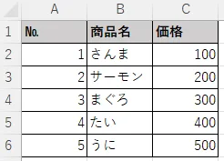 | 範囲の最初の行に列名が含まれます | オン | 表の先頭行が見出しでなく、データ行の場合はオフにします。 |