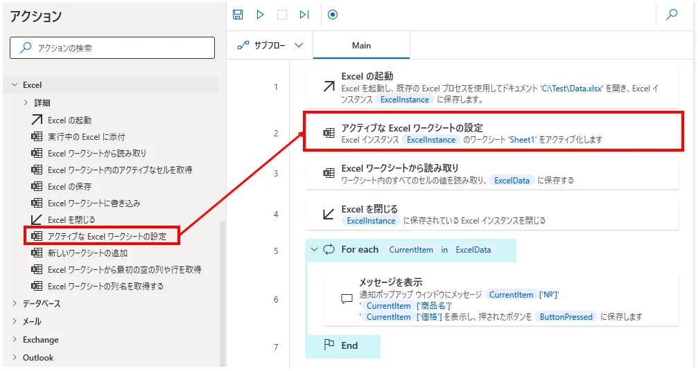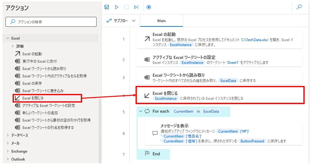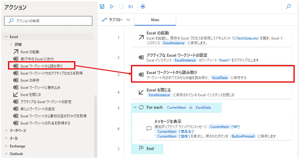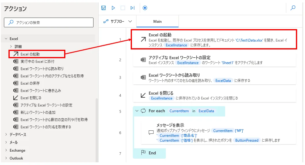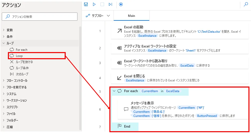 Power Automate Desktop Excelのデータを読み込みループで1行ずつ処理する