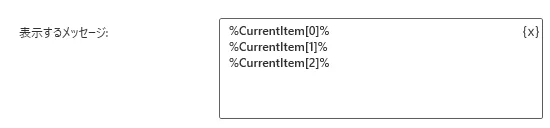 生成された変数の%CurrentItem%に1行のデータが格納されています。